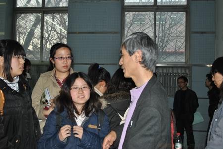 會場氣氛活躍,北林師生和園林愛好者對日本教授們的精彩報告不時報以熱烈的掌聲。報告會后,大家圍著日本代表團教授們進行熱切交流討論。