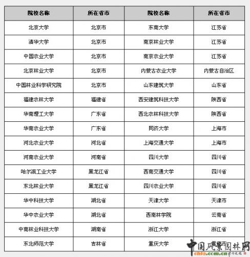 2011年招收風(fēng)景園林碩士院校名單
