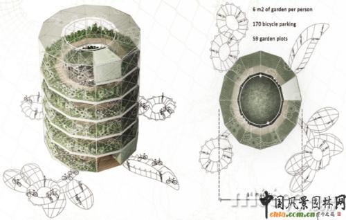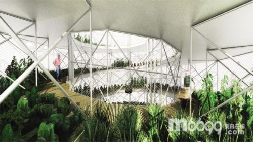 輕質量的網形結構為人們提供了一個都市園藝空間,鼓勵人們常來這里和他人互動。