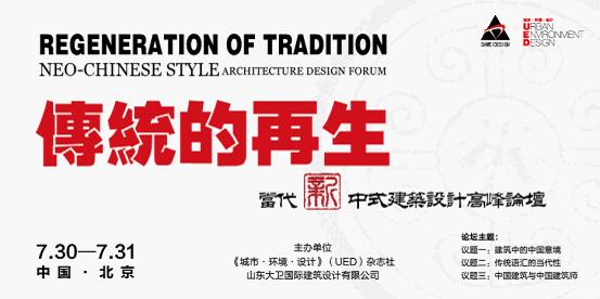 2011年7月30日——31日,由《城市·環境·設計》(UED)雜志社和山東大衛國際建筑設計有限公司聯合主辦的“傳統的再生——當代新中式建筑設計高峰論壇”將在北京世紀國建賓館隆重拉開帷幕。
