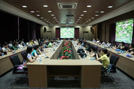《荷花的歷史、分類及栽培技術》講座的報告人為國際荷花登錄負責人、上海辰山植物園(中科院上海辰山植物科研中心)教授田代科博士,他從荷花的起源、歷史演化、品種分類、栽培技術等方面,為與會人員作了詳細地介紹。應邀來辰山的江西省廣昌縣白蓮產業發展局局長、白蓮科學研究所所長謝克強作《荷花航天育種及中國子蓮的產業發展》講座,他詳細地介紹了中國荷花航天育種及太空蓮的發展情況。