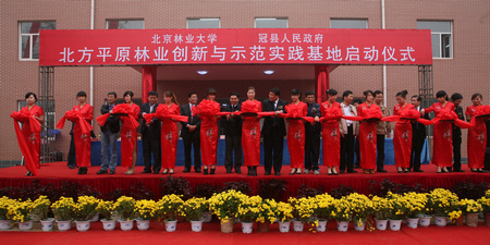 近日,北京林業大學在山東冠縣建設的北方平原林業創新與良種示范基地正式啟用。校長宋維明、副校長張啟翔和國家林業局科技司副司長李興等有關負責人一起,為新基地啟用剪彩。