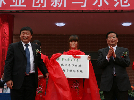 校長宋維明為北方平原林業創新與良種示范基地揭牌