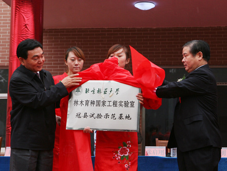 張啟翔副校長為林木育種國家工程實驗室冠縣基地揭牌