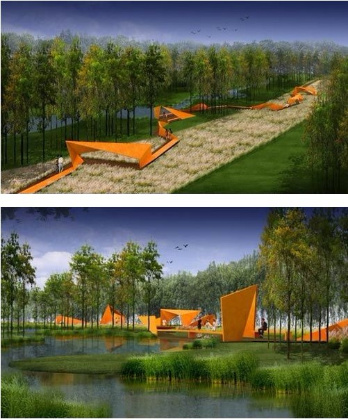 設計作品“河北省遷安市三里河兩岸環境整治建設項目”位列2009年中國人居環境范例獎名單中。該項目位于河北省遷安市河東區三里河沿岸,項目主要為河道改造及沿岸景觀設計。河道部分干枯,較多區域為污染。秉承生態與人文的設計理念,方案用“三明治”式的帶狀綠地結構,在一個污染的城區河道上,恢復了一個生態的綠色基底,在此基底上形成一條獨具特色的廊道。合解決了河道清污、生態重建、民眾休閑、遺產利用、文化體現等問題。