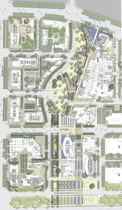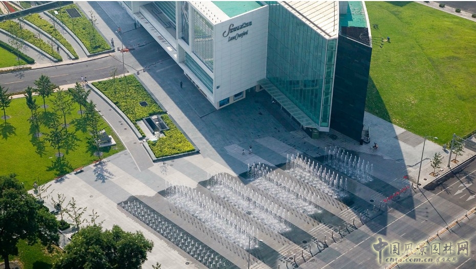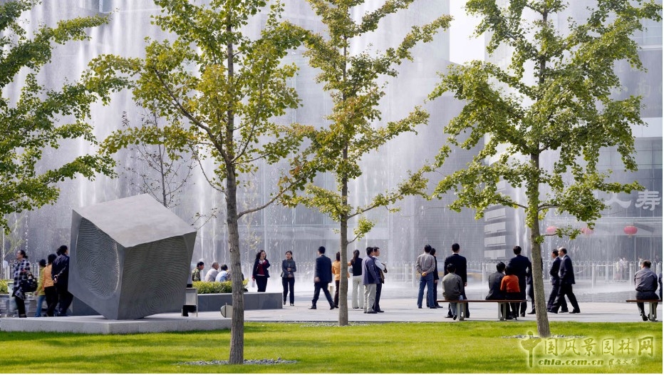 中國風景園林網訊:北京金融中心的總體規劃為北京西部創建一個國際性地標場地。項目國際性金融機構云集,五星級酒店、金融家俱樂部、國際會議中心、國際學校、涉外公寓等全方位的配套設施齊全,在中心景觀設計方面被叫做北京西部的“心臟”。SWA事務所的景觀設計和SOM建筑事務所的建筑設計同樣出色,他們將城市設計和景觀設計融合到了設計的物質和文化結構中。這個大型的公共公園為該區提供了一個開放的空間,一個多動能的庭院。噴泉廣場帶有電腦動畫,夜晚的燈光也是一道靚麗的風景線。