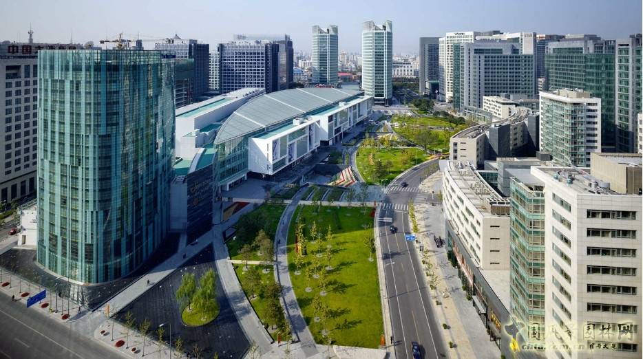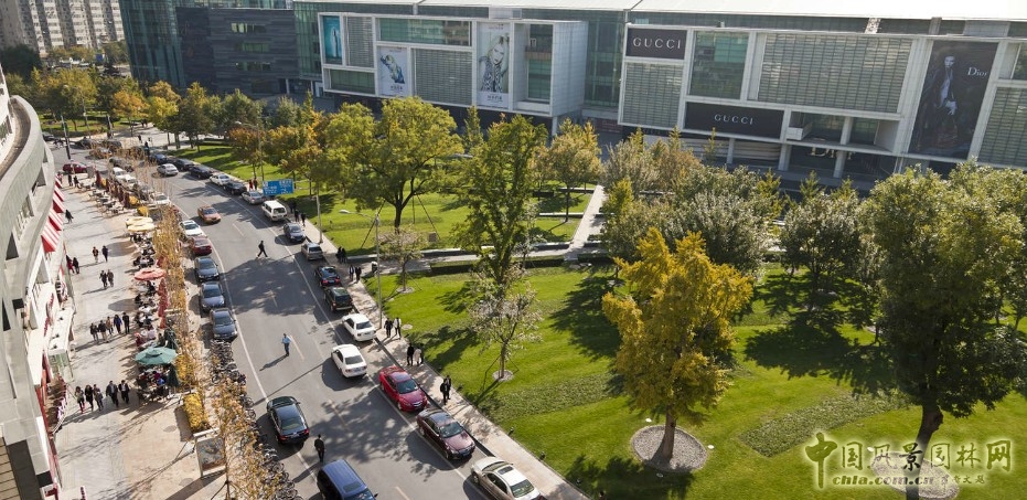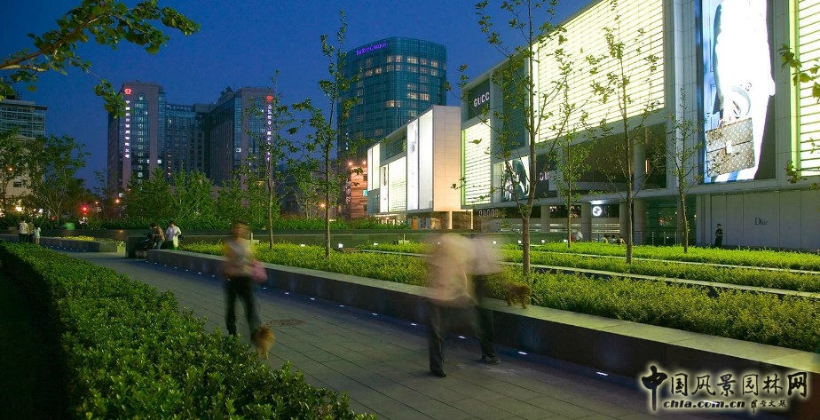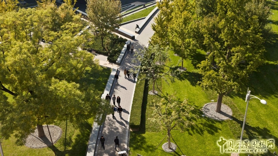 公園與建筑中的條條道路都是相通的。整齊的樹列和修建的綠籬是中國園林藝術中吧建筑和墻延伸到花園的現代詮釋。