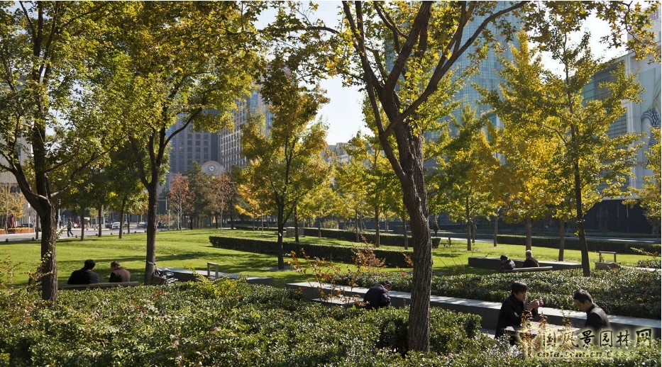 北京金融街公園為北京的文化標識創建一個獨特的國際地標。景觀中有建筑,建筑中有景觀的設計概念是中國古典園林中“借景”手法的現代演繹。這個設計在四個特殊的方面采用了“借景”的手法。