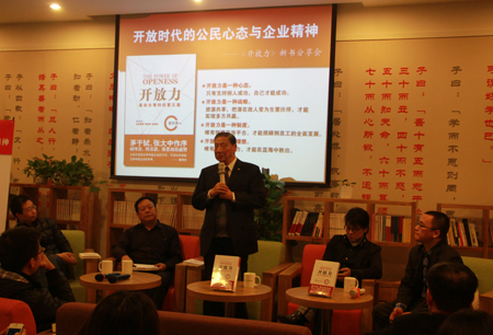 茅于軾、蘇小和、孫大午、梁春曉分別從不同的角度談?wù)摿?ldquo;身處開放時代,普通公民和企業(yè)該保持什么樣的心態(tài)”這一大多數(shù)人并未考慮過的問題,并表達(dá)了他們個人對于開放力的理解。郭宇寬認(rèn)為:“開放力就像釋迦牟尼說的‘斷煩惱,證菩提’,學(xué)才游泳的人,恐怕就能體會到,一個不會游泳的人,在水里面會很緊張,拼命掙扎,反而嗆水,往水里沉;而找到了感覺,身體卻很放松,卻能順其自然的漂浮起來了。開放力也是這樣,是可以體悟、可以修行、可以成就的。開放力是一種心態(tài),就像孔子提倡的‘己欲立而立人,己欲達(dá)而達(dá)人’,只有支持別人成功,自己才能成功。這個話說起來很簡單,要做到并不算容易,人的本能常常是希望把別人踩下去、自己站起來,而不是和別人一起成長。”