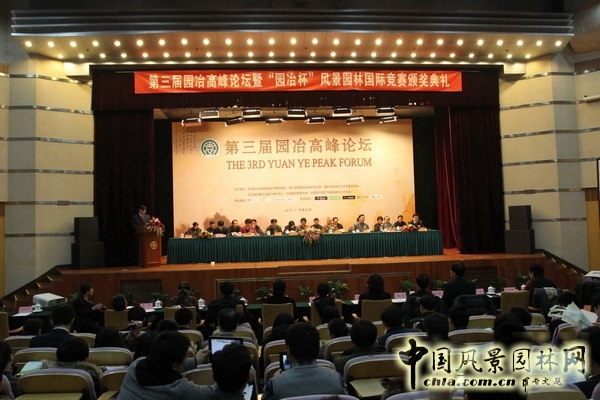 第三屆園冶高峰論壇于2013年1月12日在北京新大都飯店成功舉辦。論壇主題為“生態文明,美麗中國--傳承園冶造園文化遺產,建設中華民族美麗家園”,同期舉行了園冶杯風景園林國際競賽以及第九屆園博會設計師廣場的頒獎儀式。十屆全國人大常委會副委員長、文化部華夏文化遺產保護中心名譽主席顧秀蓮蒞臨大會,開幕式上住房和城鄉建設部副部長、黨組成員仇保興為第三屆園冶高峰論壇發來了賀信。