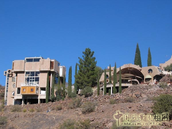 作為最早的新能源試驗站,阿科桑蒂的實施建設堅持兩個基本原則:降低能源消耗和降低汽車使用量。它利用沙漠中最強大的能源——太陽,作為自己所計劃城市的動力之源,采用獨特的圓穹頂篷和高塔式建筑風格,為現(xiàn)代建筑的自然采光和通風系統(tǒng)設計提供了實用和審美相融合的完美范本。同時,腳踏車是社區(qū)的主要交通工具,汽車在這種城市是不被允許的,全部的食物、熱源、冷源和各種生活需要可以通過建筑設計和運用物理學的效應而得到。