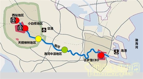 天津是因河而生,它的城市格局如何來構架?北京有條中軸線,是從景山開始一直到了天安門,但是對于天津來說就是海河,所以我們的城市中心是沿著海河來布置的,包括小白樓、西站、天鋼柳林、于家堡、響螺灣等,這個76公里長的地方布置總共有5個城市中心,中間有一個100公里的海河中游空間,作為以后城市發展的未來中心。
