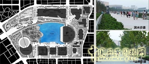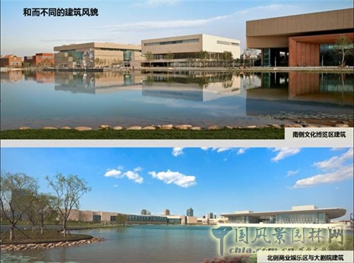 但是,對現(xiàn)代建筑來說,如何在中心城區(qū)中做好城中的繼承呢?我將以我們所做的天津文化中心為例來講解。該項目位于城市的中心,就相當(dāng)于北京的天安門、上海的人民廣場一樣。因為天津600年一直沒有中心,這幾年,伴隨著天津的發(fā)展,逐漸意識到天津需要一個城市中心。那么,用什么去做中心?用文化去做中心再合適不過了。所以,在這個城市中心,設(shè)置了博物館、美術(shù)館、圖書館、大劇院以及其他的活動中心,把市委、市政府等政府類建筑放到周邊,體現(xiàn)出它的人文性和功能性。這在中國城市的建設(shè)中是非常少有的做法。那么,在這個區(qū)域當(dāng)中如何來把控?我想,需要的是用整體性來把控城市中心。我們中國做了很多這種城市中心,但是就缺乏整體的把握,有些甚至出現(xiàn)了城市的亂象。對于這個區(qū)域來講,以山、水、塔、樓構(gòu)架城市中心,在植物選擇上面也要體現(xiàn)整體性的把控,因此我們在綠化過程中,盡力尋找一種有特色、能開花的樹種作為這個區(qū)域的代表。起初選擇了櫻花,后來選擇了適合天津當(dāng)?shù)貧夂虻奈鞲L模?600棵的西府海棠組成一個海棠區(qū),等到4月份開花的時候,這個地方便會像華盛頓DC一樣,作為城市的一個節(jié)日區(qū)域來打造。