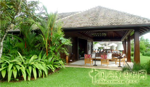 如圖所示是酒店的海岸別墅,設(shè)計者最大化地減少了房屋的基底面積,用以保證生態(tài)環(huán)境。設(shè)計過程中很重要一點就是使用當(dāng)?shù)卦闹参铮鹊竭@些植物再生長,成熟以后就沒必要花費很大的維護(hù)成本了。竹子之類的都是當(dāng)?shù)卦牟牧稀?