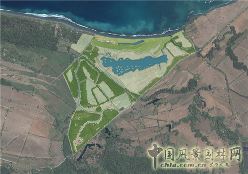 這是在中美洲哥斯達黎加的一個生態酒店,這家生態酒店位于哥斯達黎加西南部,沿岸線大概有1.7公里長,整個基地大約是800公頃,我們現在看到的圖中這塊大概是200公頃,是第一期開發。