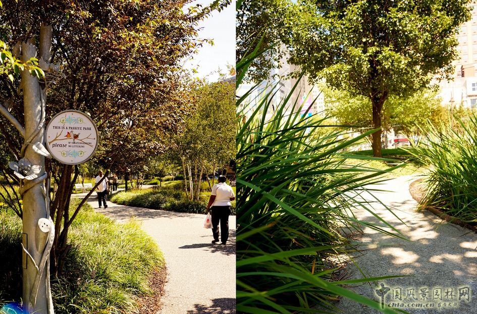 為了確保公園的設(shè)計能夠真正的引起使用者的共鳴,Astorino的景觀設(shè)計師與一個深入探究場地的研究機構(gòu)合作,通過他們的調(diào)查分析,這個區(qū)域有三點隱藏的特征:聯(lián)系、平衡、動態(tài)。Astorino的設(shè)計師將這三點整合到自己的設(shè)計中。比如,種植大量的植物將行人與自然聯(lián)系起來;有趣的雕塑和帶有雕刻名言的長凳將童年的記憶與現(xiàn)在的景觀聯(lián)系起來,更加強調(diào)了PNC的成長項目的主旨與原則;蜿蜒盤旋的道路營造出一種動態(tài)變換的感覺。