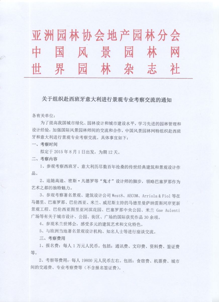 關于組織赴西班牙意大利進行景觀專業考察交流的通知