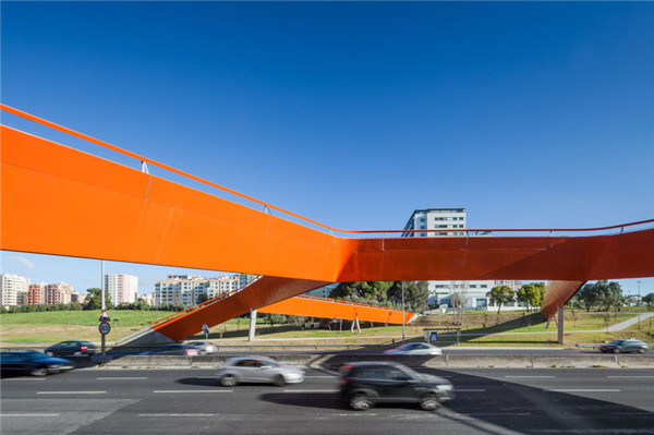 葡萄牙里斯本橙色鋼制騎行橋景觀設計