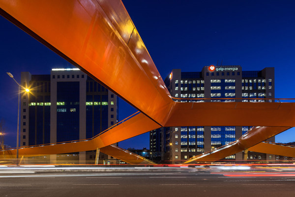 葡萄牙里斯本橙色鋼制騎行橋景觀設計