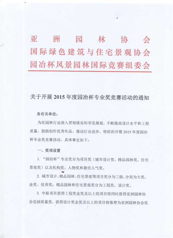 關于開展2015年度園冶杯專業獎競賽活動的通知