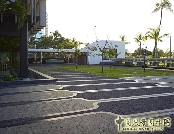 廣場中鋪設的道路呈現(xiàn)三種形態(tài)各異的紋理,在夏威夷日光的照射下更顯獨特。