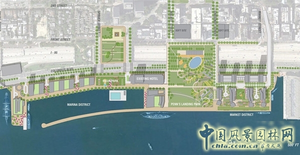 中國風景園林網訊 作為世界頂級獎項之一的ASLA專業獎,旨在對美國及世界各地頂級的公共場所、住宅設計、校園、公園和城市規劃項目進行表彰。日前,ASLA官方公布了2015年度34個榮獲專業獎獎項的項目。其中,美國賓夕法尼亞州費城濱水區再開發可行性研究項目榮獲2015ASLA專業獎,分析與規劃類杰出獎。