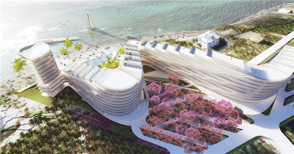 計劃于2018年秋季開業的度假村綜合體占地16英畝,前面就是1000英尺的私人自然沙灘,設計旨在與周圍獨特的環境做對比同時也向它致敬。