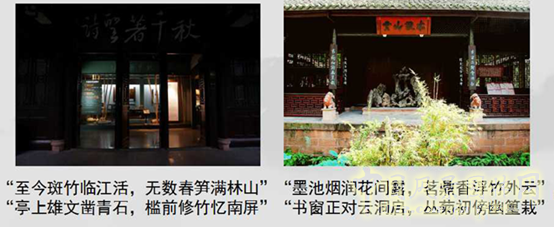 西蜀園林中,竹景的題匾、楹聯也頗有深意,構成了實物性的文學意象。竹子,與西蜀園林中竹文化與文學藝術結合,源遠流長。