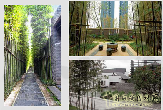 竹文化在現(xiàn)代生活中無處不在,城市景觀中,運(yùn)用竹類植物最多的是新中式園林景觀,竹類植物多運(yùn)用較小的觀賞竹,注重與墻體、小品、石頭的搭配,體現(xiàn)簡(jiǎn)潔、大方的造園思想。