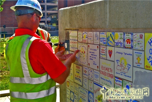 原有公園中的一大特色是小瀑布中央的一面粘滿五顏六色的手繪瓷磚的水泥墻,這里的每一塊瓷磚都講述著一個故事,為紀念曾經或現在的偉大女性,她們是母親、祖母、姐姐、妹妹;是朋友;是教師、醫者、導師……而由于風化作用及其本身的易碎性質,想要在現有的項目中繼續保留這些多彩的瓷磚已然難以施行。