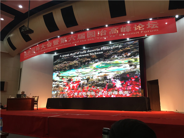 孟兆禎院士帶來題為“共學園冶,傳承創新”的主旨報告,他指出人類的壽命是有限的,但“天人合一”這種宇宙觀是科學的,人類必須尊重自然,要創造美的園林風景,首先是要自然與社會的融合發展。素有“喀斯特盧”稱號的中國工程院院士盧耀如以實際地形案例圖片,講述生態園林內涵與實現美麗中國夢的聯系。住建部原總規劃師、中國城市規劃協會會長唐凱先生,以《提高城市發展的宜居性》為主題,列舉了廣州、福建等多個城市在規劃和建設實踐中經驗和教訓,引起與會代表的共鳴。
