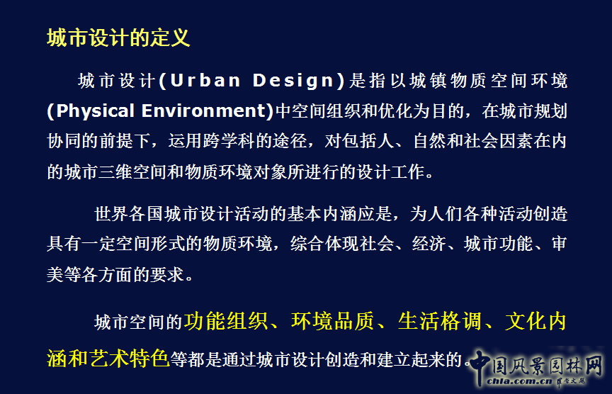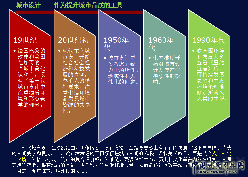 從19世紀、20世紀,一直到今天,城市設計已經發(fā)生了很大的變化,它必須要跟人的需求,和社會經濟環(huán)境融成一個總體,形成一個人、環(huán)境為核心的領域。