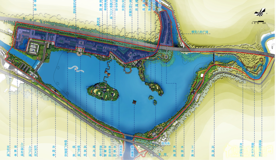 在景觀布置上我們考慮了三江堰景觀分為“一湖、兩岸、三島、三江”為加快目前污染日趨嚴重的劍江河上游楊柳街河的治理工作,都勻市決定在沙包堡辦事處陸家寨劍江河修建攔水堰一座,用于凈化楊柳街河水質,規劃實施筑壩治污,濕地綠化,打造劍江河三江堰水生態保護區及濱河景觀度假區。