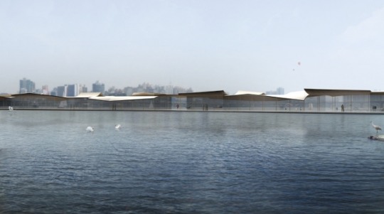 項目位于韓國首爾漢江南岸。本項目根據視覺要求完成了一個長形的建筑物。建筑高5米,以線條般的形態浮于水面上。這種形態的設計源自對碼頭利用率的思考。碼頭可容納7個700噸船舶,及20艘游船和私人船只。碼頭略帶弧度的形態能保證船只運輸達到最佳狀態,同時能夠在水面上開辟一條確切的路線。