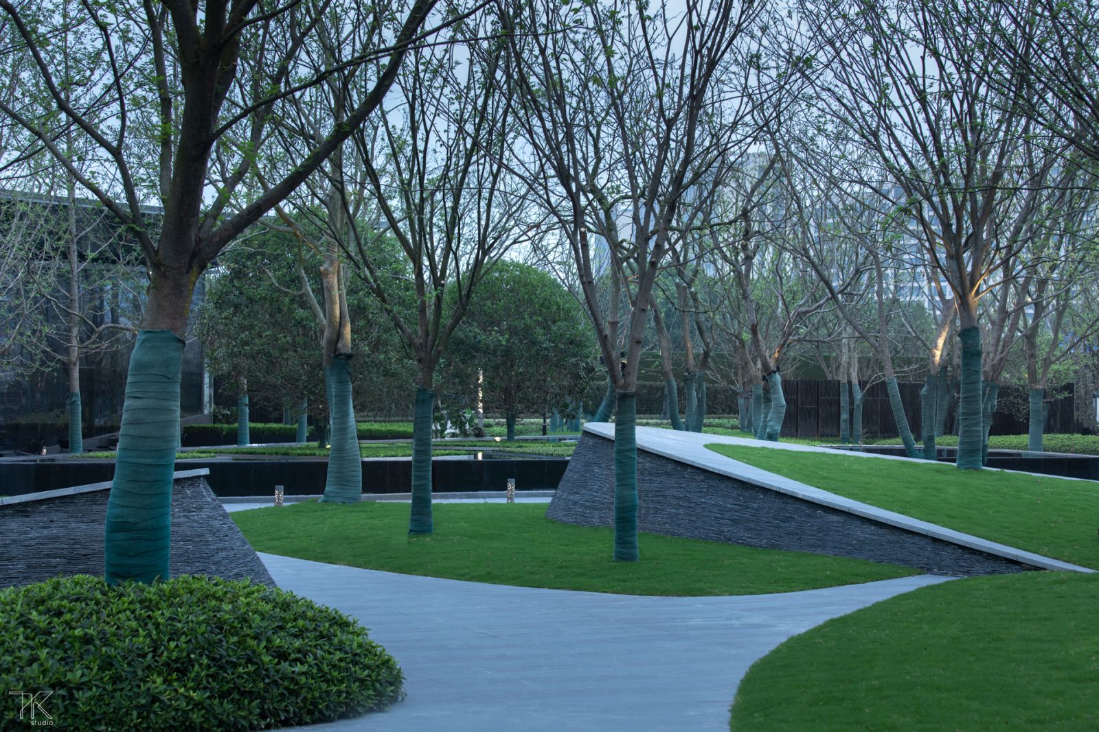 Different combination among water features, berms and planting have mimicked different ecosystems in nature and be introduced into the project. The triangular islands of green plants connect the hardscape and the water elements. The entire picturesque landscape is harmonious.