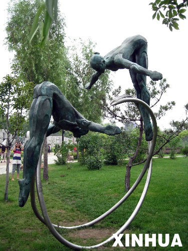 圖為公園內(nèi)的雕塑《跳水》(7月18日攝)