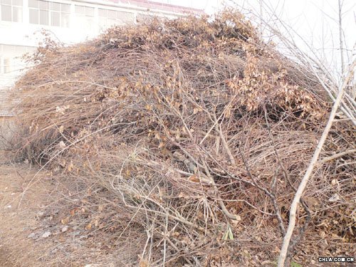 宋店鄉(xiāng)園藝良種場集中堆放的因雪災而死亡的各種花木