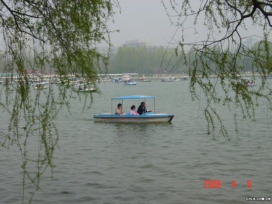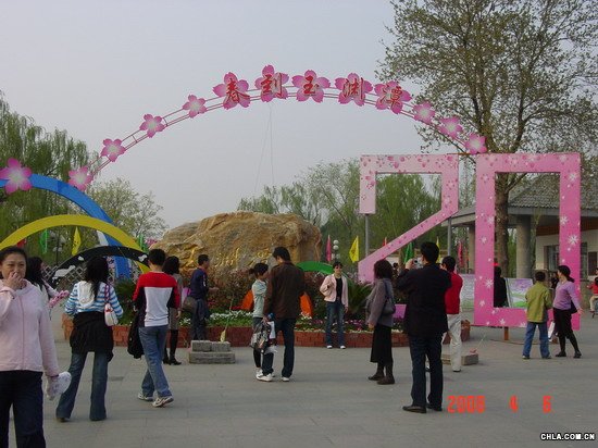玉淵潭公園入口處,游人紛紛留影紀(jì)念。