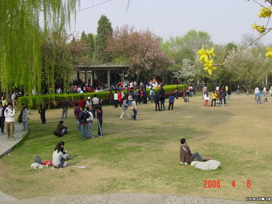 尚未恢復(fù)生長草坪已成為人們休息的場地。