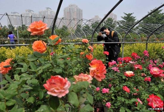 6月5日,一名記者在北京市園林科學(xué)研究所花圃拍攝月季花。當(dāng)日,來自10多個國家的百余位中外記者在北京市園林科學(xué)研究所和順義區(qū)北郎中花木中心提前領(lǐng)略了奧運(yùn)花卉風(fēng)采。奧運(yùn)花卉將在奧運(yùn)期間成為扮靚天安門廣場、機(jī)場路、奧林匹克中心區(qū)等重點(diǎn)區(qū)域的主角,這些重點(diǎn)區(qū)域的用花量預(yù)計(jì)將在4000萬盆株以上。
