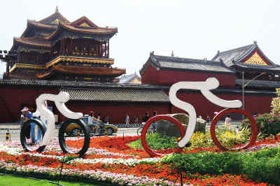 雍和宮門前的體育標識花壇。