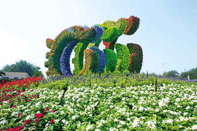 農(nóng)展館門前擺放的奧運花壇。