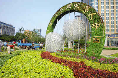 以天干地支紀年法為主題的奧運花壇,出現(xiàn)在東單路口。