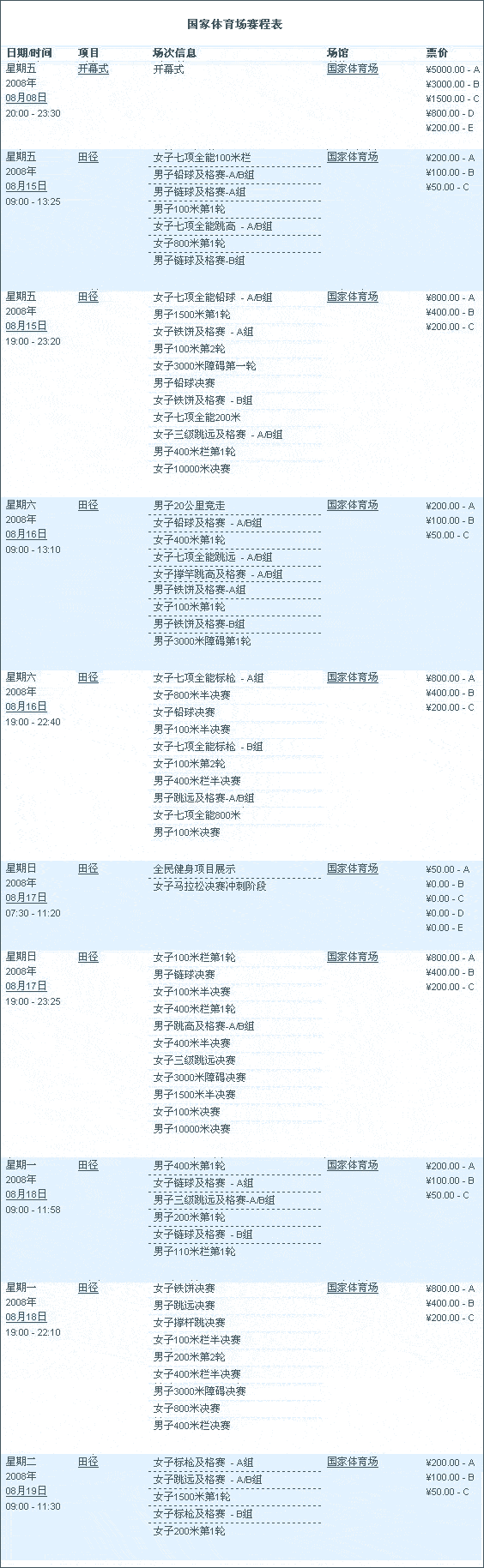 奧運場館追蹤:國家體育場賽程表(組圖)