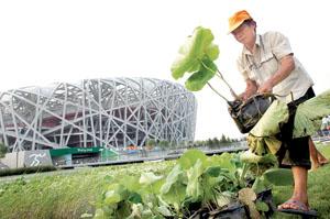 補(bǔ)種荷花 鳥巢昨日續(xù)“龍尾”(圖)