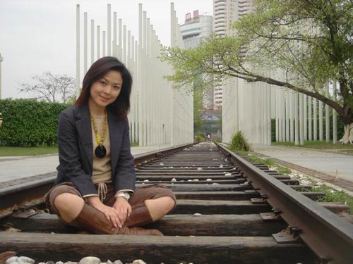 鳳凰衛視知名女記者謝亞芳在鐵軌前留影