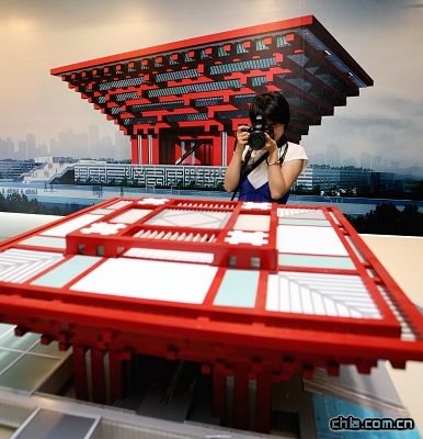 游客拍攝上海城市規劃館中展出的世博會“中國館”模型