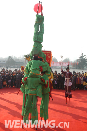 2月9日下午,中國非物質文化遺產傳統技藝大展開幕式在全國農業展覽館舉行。圖為開幕式上的國家級非物質文化遺產中國遼寧海城高蹺秧歌表演。 中國文明網 王嘯 攝