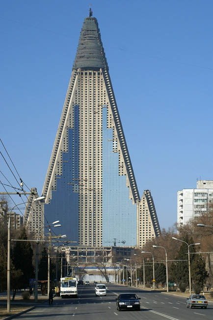 柳京飯店可以說是一座最典型的“摩天爛尾樓”。這座至今未能完工的摩天大樓,呈三角金字塔型,高105層,總面積36萬平方米,本應(yīng)成為一座氣勢宏偉的朝鮮平壤的標(biāo)志性建筑,可因為缺乏資金,又遇到地基下沉、電力不足等問題,1992年完成結(jié)構(gòu)工程后,停工至今。