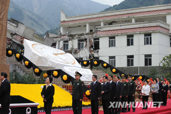 5月12日,紀(jì)念汶川特大地震一周年活動在四川省汶川縣映秀鎮(zhèn)隆重舉行。新華社記者饒愛民 攝
